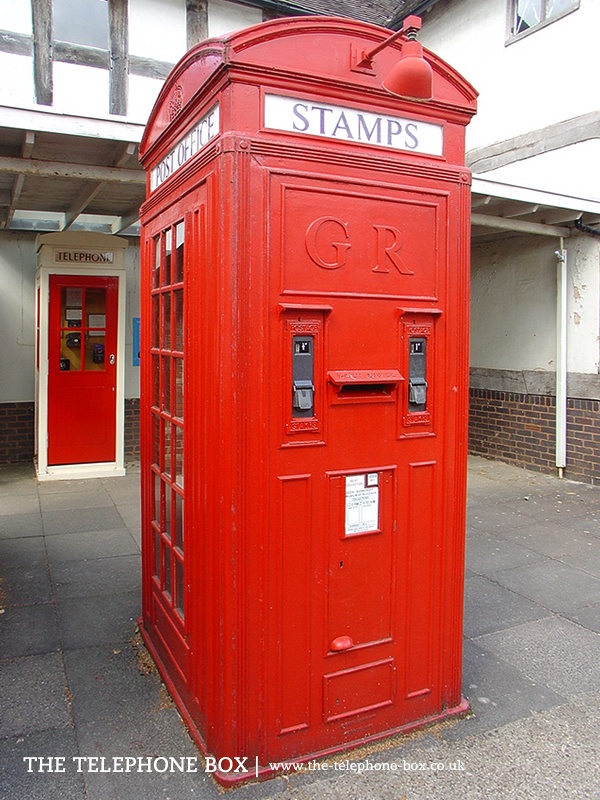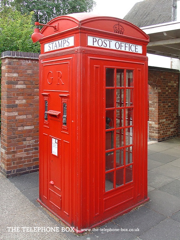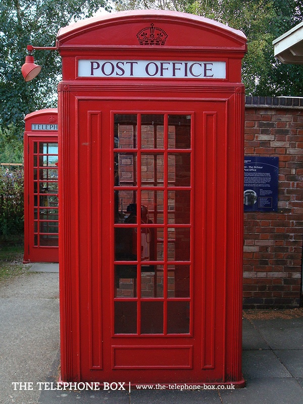 The K4 kiosk was designed by the Engineering Department of the General Post Office. It used the successful design of the K2 kiosk, by Sir Giles Gilbert Scott, expanded to include a post box and stamp machine; it was an automated mini-Post Office. The K4 kiosk was enormous and was half as big again as the K2 kiosk. The K4 was introduced in limited numbers in Britain and production ceased within five years. Only 5 examples remain and are given Grade II listing status by English Heritage.