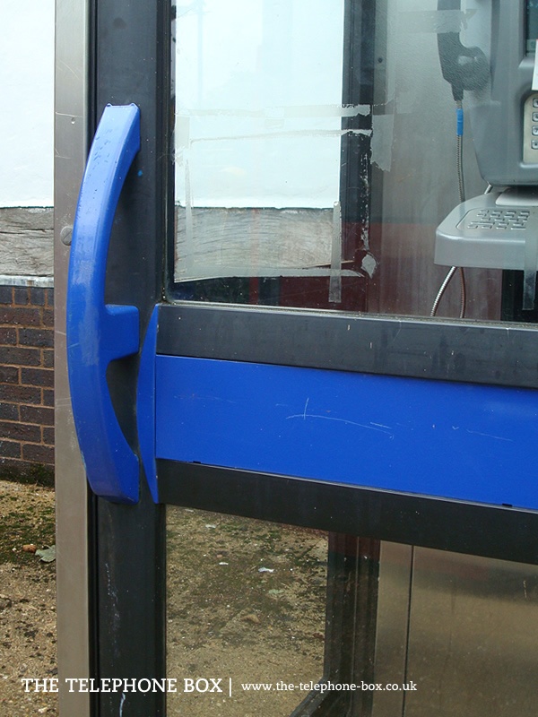The KX100 Plus kiosk is largely based on the design of the KX100 kiosk, although the KX100 Plus is slightly taller. The KX100 Plus utilises the same light-weight construction as the KX100. It has an aluminum frame and is clad in stainless steel panels with anodised aluminium edging. The door and sides are glazed, with a coloured mid-section trim panel and matching trim panel at the top. The sides and door of the kiosk stop short of the ground to provide ventilation. The door of the kiosk features a large, brightly-coloured moulded plastic grab handle. In a nod to earlier GPO kiosks and following feedback on the design of the KX100, the KX100 Plus features a domed, plastic roof. The earliest KX100 Plus kiosks carried signage on the door and side lintels, and on the domed roof. Inside the kiosks have a large illuminated display panel. The KX100 Plus was initially introduced with red trim panels and a red-domed roof. Red was chosen for its high visibility, but also recalled the red colour of the GPO kiosks. Later, British Telecom introduced KX100 Plus kiosks with internet connectivity. These were in a distinctive blue colour to distinguish them from kiosks with standard telephone equipment.