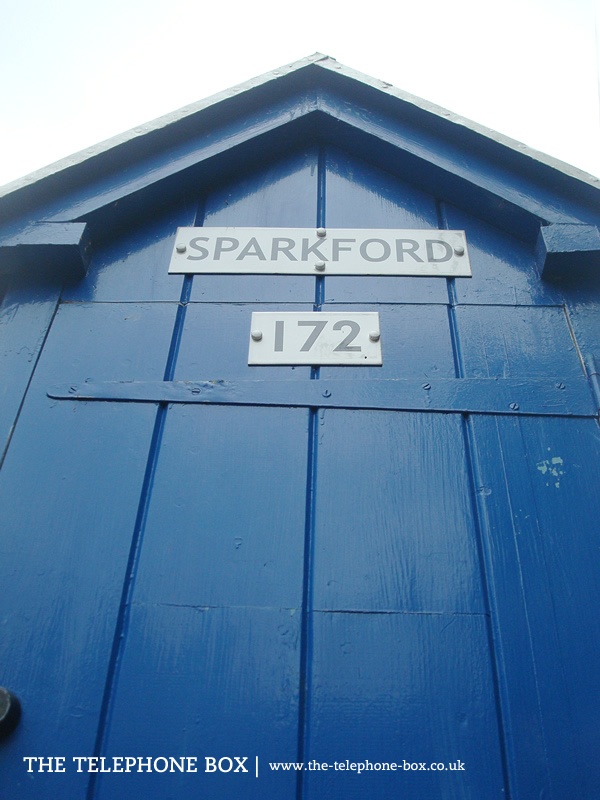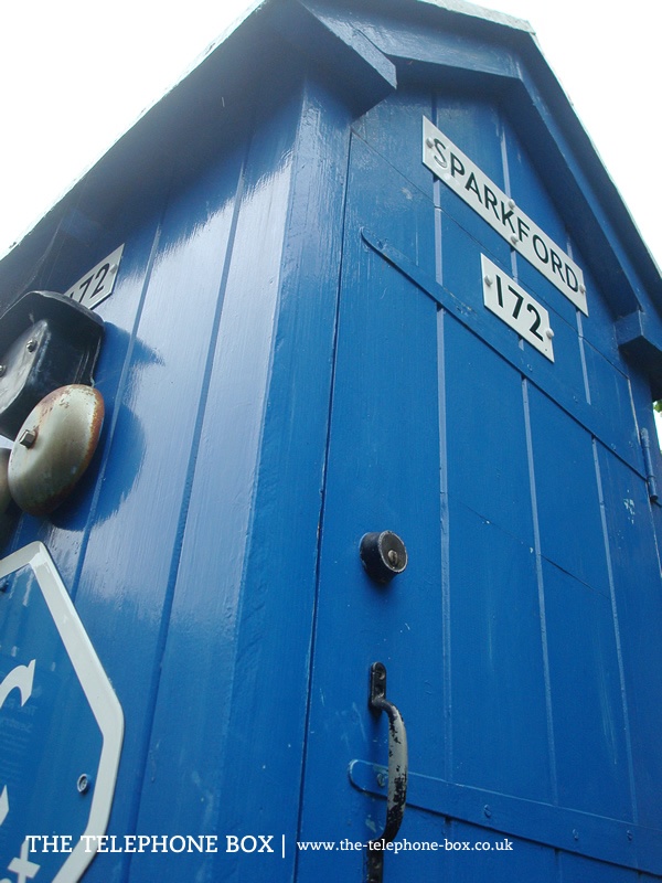 The Hudlass Sentry Box is of timber construction with a pitched roof. The main body of the box tapers outwards towards a square base. The body has a timber outer frame, clad in tongue-and- groove timber boards. The box is painted in royal blue. The box is fitted with a stable door, divided horizontally in half so that the top half could be opened independently. Each half of the door has exterior strap hinges at the top and bottom. A white-painted RAC sign is affixed to the outside of the bottom-half of the stable door. A small rectangular number sign, showing the box's unique identification number is affixed to the top of the door. The left and right-hand sides of the box carry large metal-plate diamond signs showing the RAC logo picked out in white on a royal blue background, with a small rectangular number sign at the top. The left-hand side of the box carries the telephone equipment and external bells. The zinc-metal plated roof projects from the front and rear gable ends and is faced with royal blue-painted wooden eaves. Above the front door intel a large rectangular name sign is affixed to the front gable end. The sign shows the location of the sentry box, spelt out in capital sans-serif lettering.